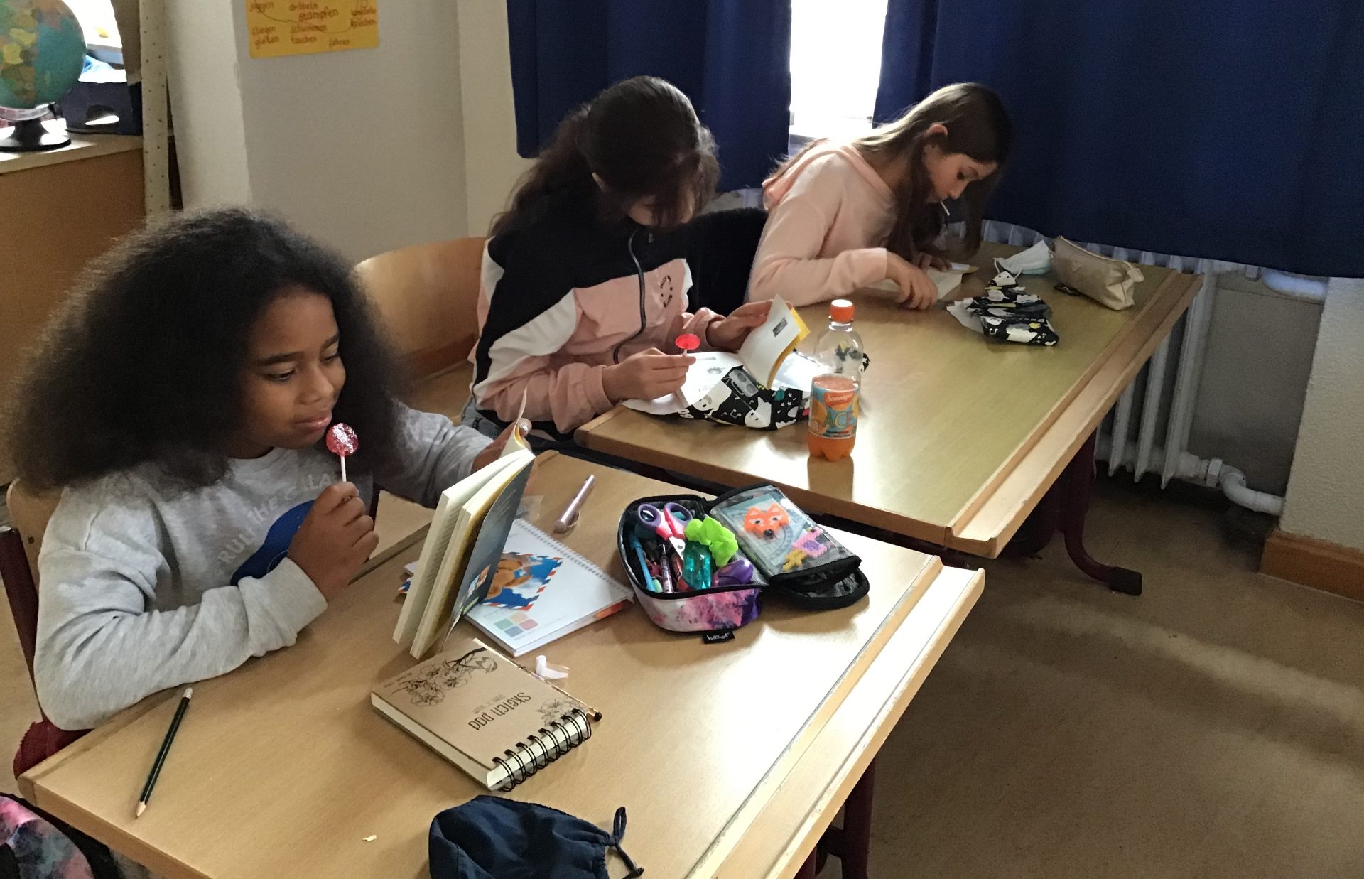 Die Lesenacht für die 4. Klasse musste aufgrund des Infektionsschutzes im Schuljahr 2020/2021 leider ausfallen. Stattdessen wurden die Kinder mit einem spannenden Buch und einer Süßigkeit ausgestattet. Natürlich haben die Kinder es sich nicht nehmen lassen, die liebevoll verpackten Geschenke direkt unter die Lupe zu nehmen und zu schmökern.
