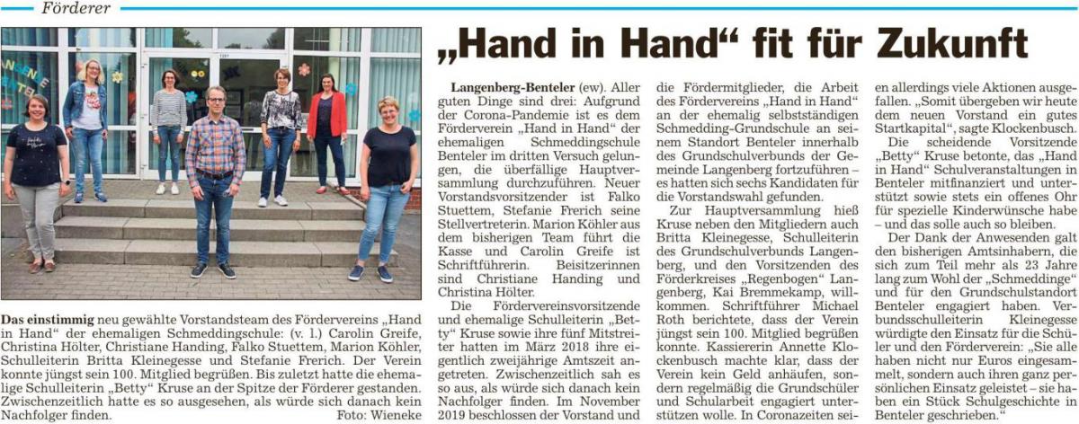 Der Förderverein "Hand in Hand" wurde 1998 gegründet und zählt ca. 120 Mitglieder.