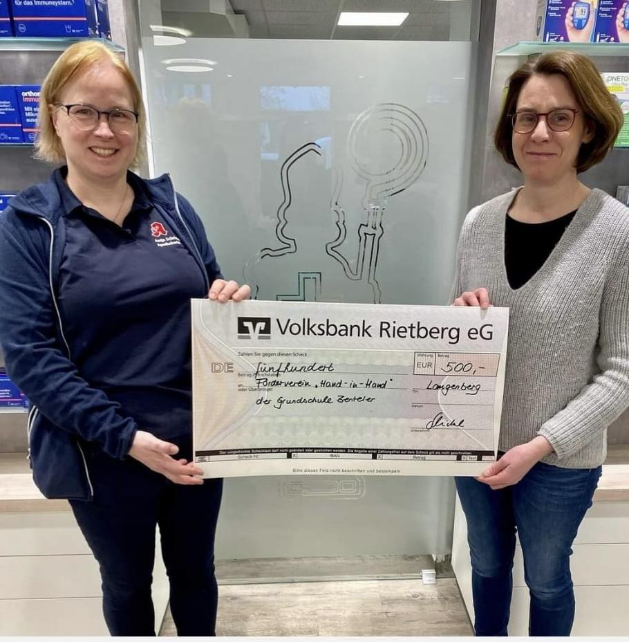 Die Lambertus-Apotheke aus Langenberg überreichte uns eine großzügige Spende. Hiervon haben wir neues Mobiliar für die Schulbücherei angeschafft. Herzlichen Dank!