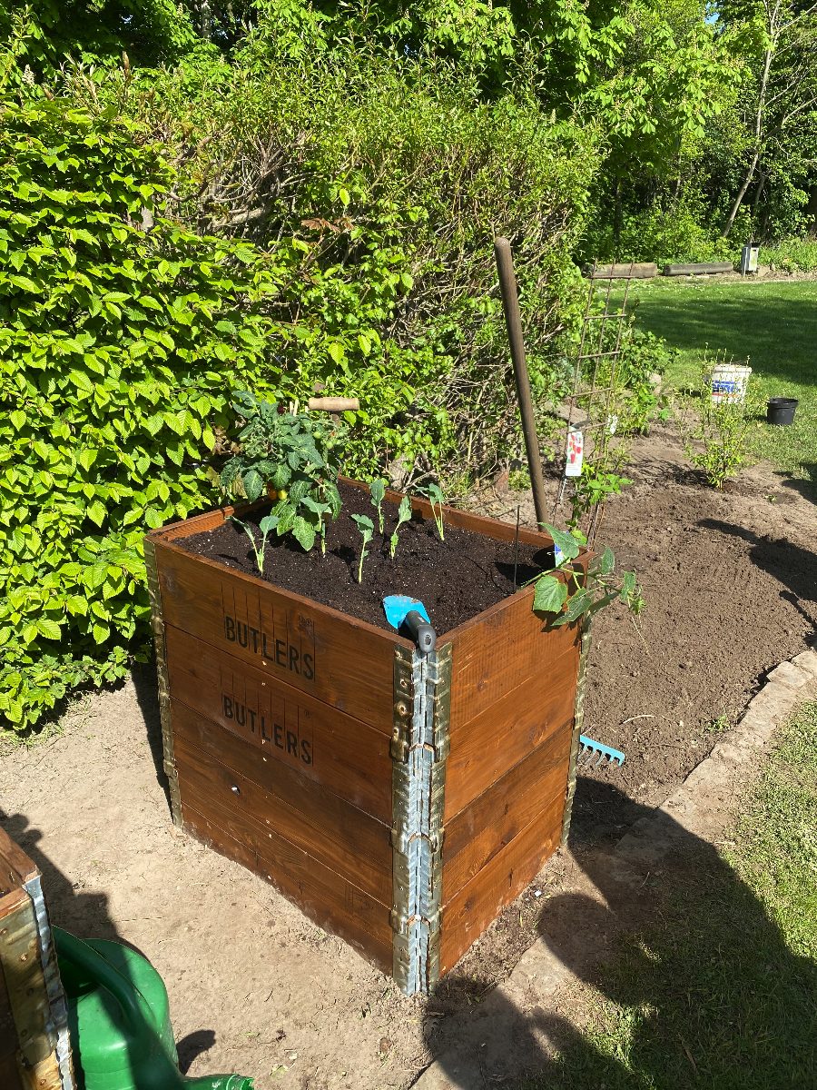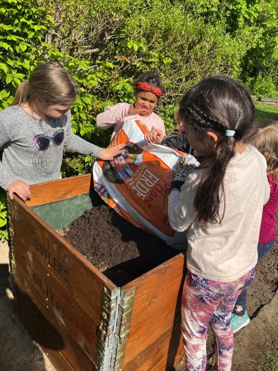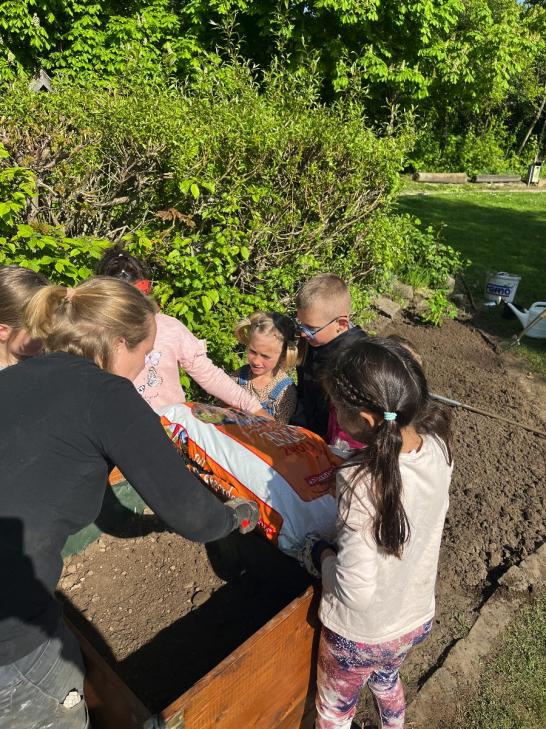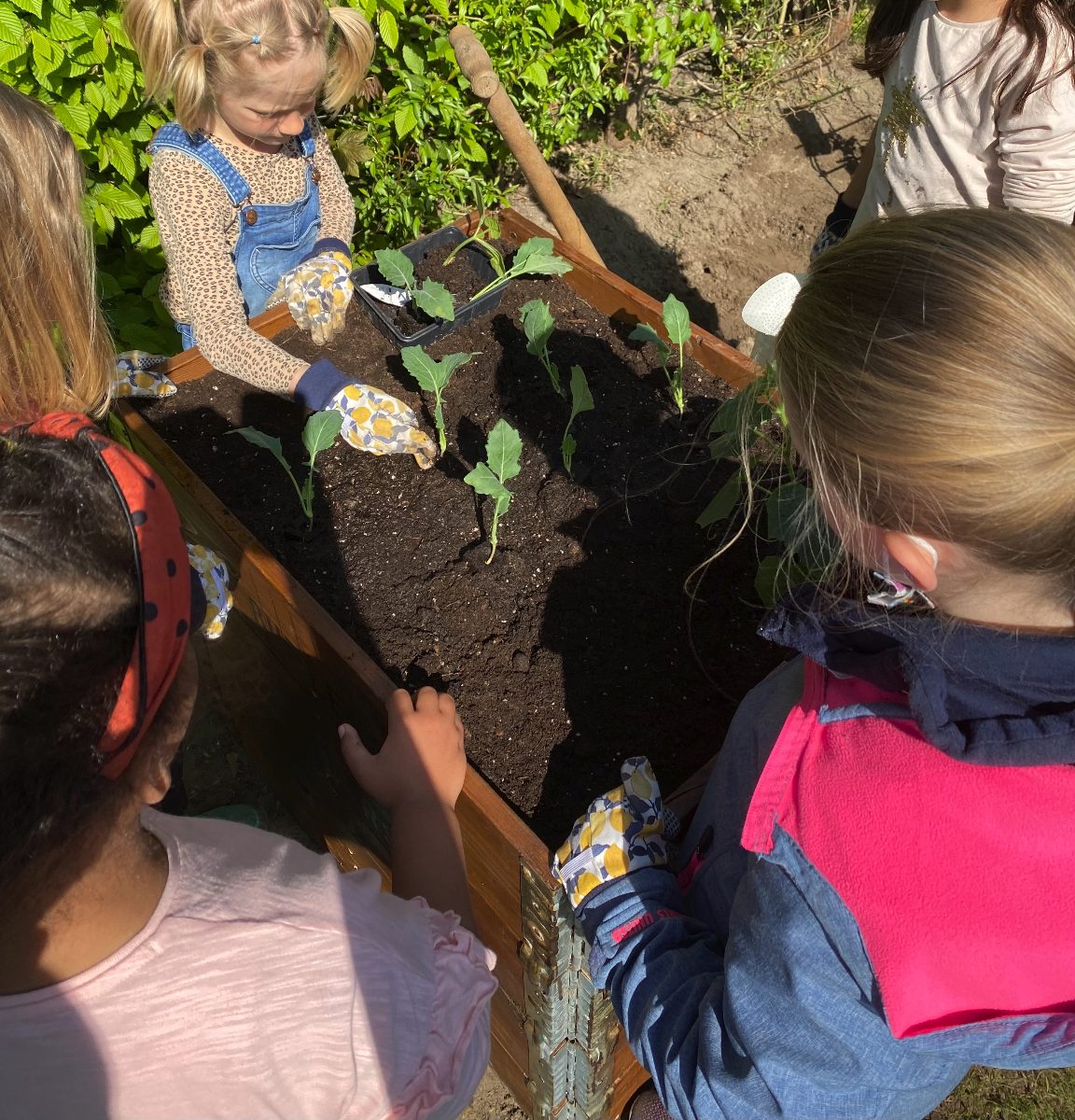 Bei strahlendem Sonnenschein befüllten die Kinder mit großem Eifer die Beete und pflanzten Johannisbeeren, Erdbeeren, Heidelbeeren, Kartoffeln, Radieschen, Zucchini, Gurken, Kohlrabi, Tomaten und Ringelblumen ein. Nun müssen sich die Kinder in Geduld üben und fleißig gießen, damit der Ernte im Sommer nichts mehr im Wege steht!
